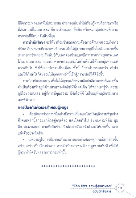 ได้อย่างเหมาะสม รวมทั้ง หากิจกรรมเสริมให้ทำาเพื่อไม่ให้หมกมุ่นทางเพศ