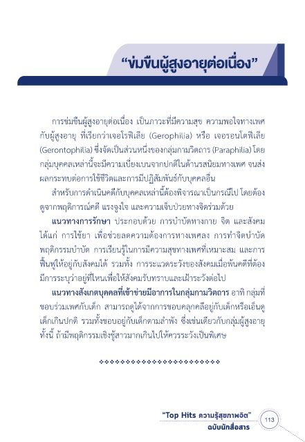 (Gerontophilia) ซึ่งจัดเป็นส่วนหนึ่งของกลุ่มกามวิตถาร (Paraphilia) โดย