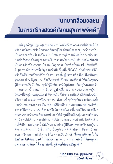 สุขภาพจิตและการฆ่าตัวตาย ซึ่งในความเป็นจริงแล้ว "โรคท�งจิตเวช ไม่ใช่